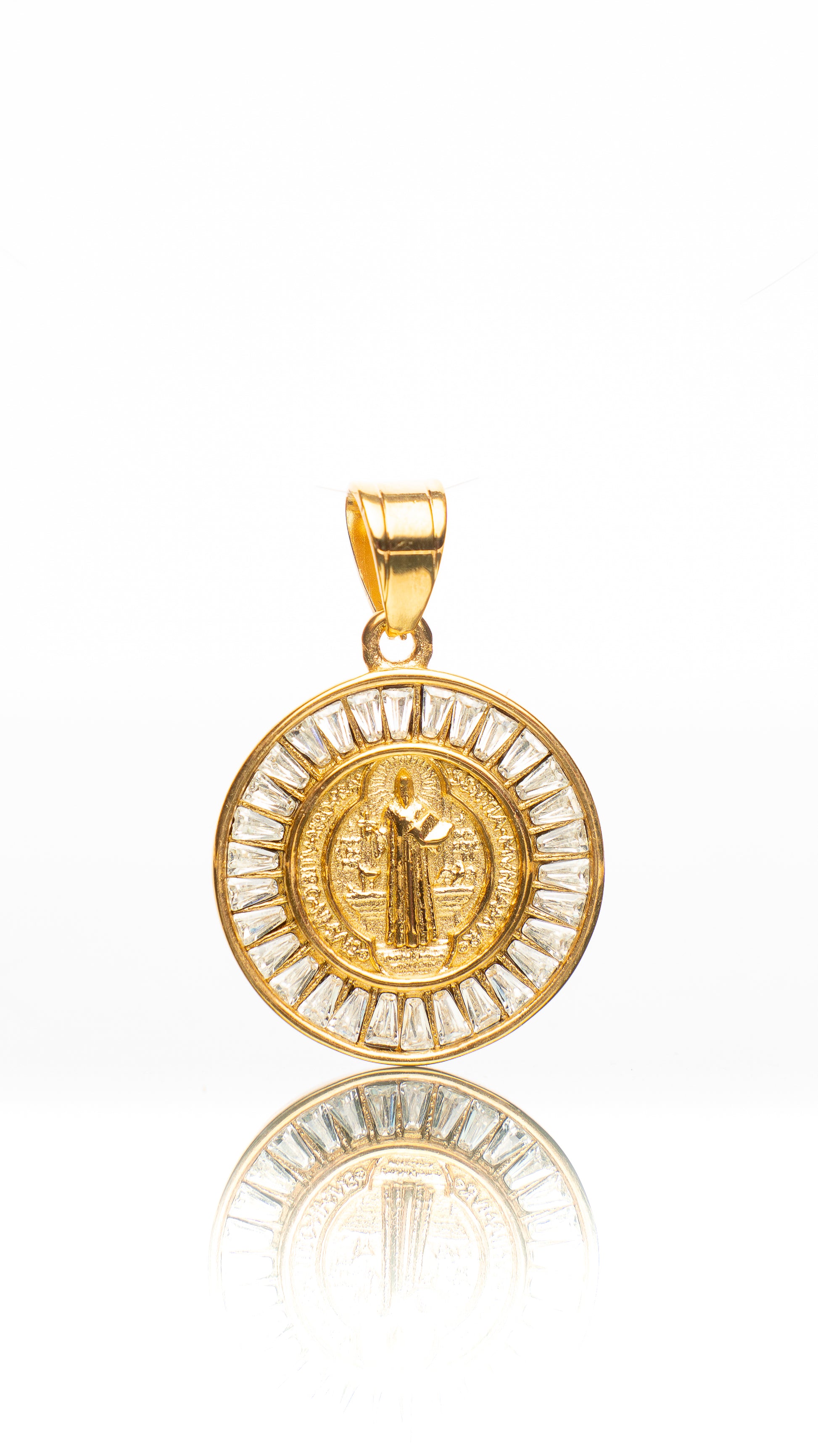 Carry a symbol of protection and divine guidance wherever you go. The Saint’s Halo Pendant features a beautifully detailed saint figure set at the center of a radiant crystal halo, crafted to reflect light with every movement.