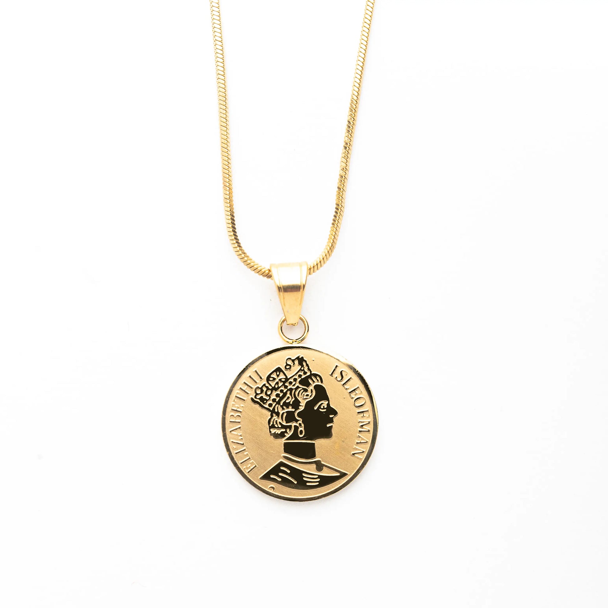 Timeless elegance meets unmatched durability with the Queen Elizabeth II Coin Pendant. Featuring the iconic profile of Queen Elizabeth II, this pendant is more than just a piece of jewelry—it's a statement of refined style.