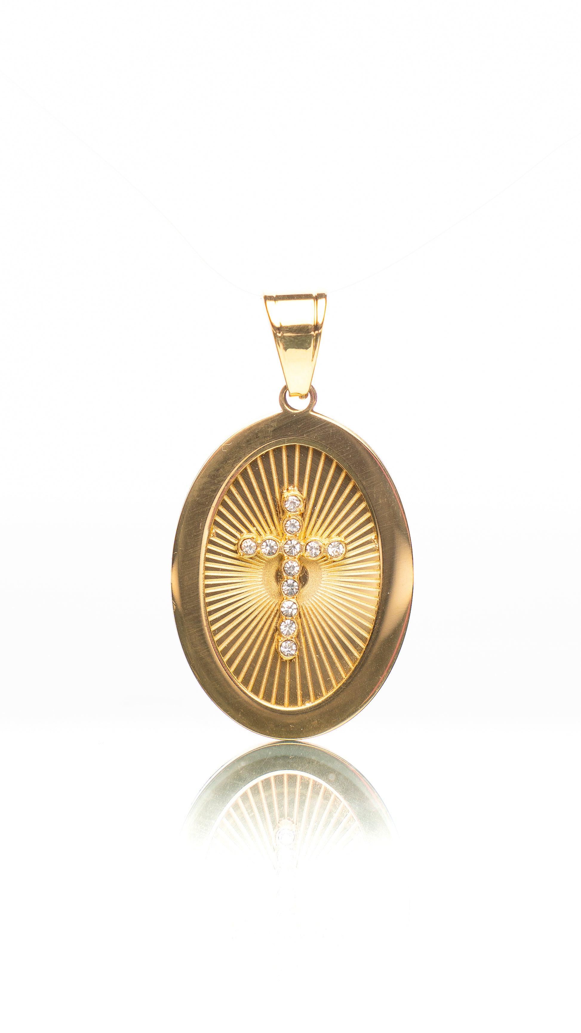 The Radiant Cross Pendant is a timeless symbol of faith and strength, designed with a refined oval frame and radiant detailing that catches the light from every angle.